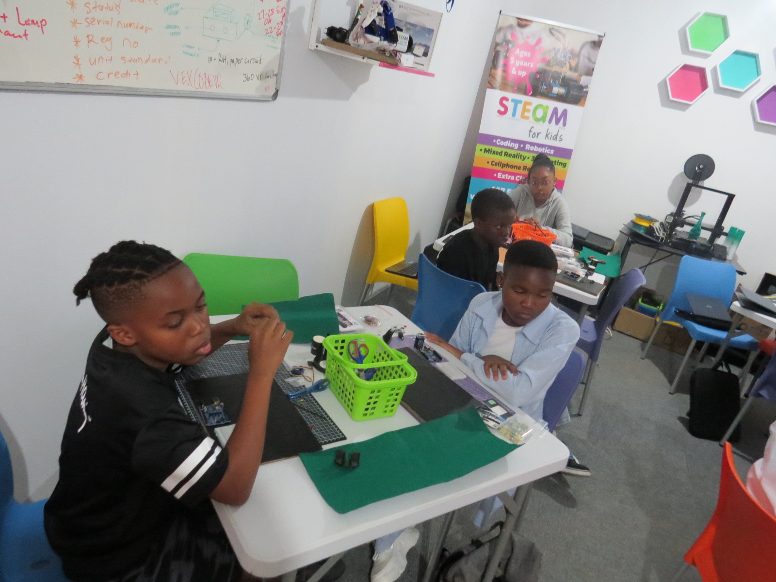 At the centre we provide a fully-equipped workstation for each child, with a minimum of 6 or maximum of 20 kids per session.